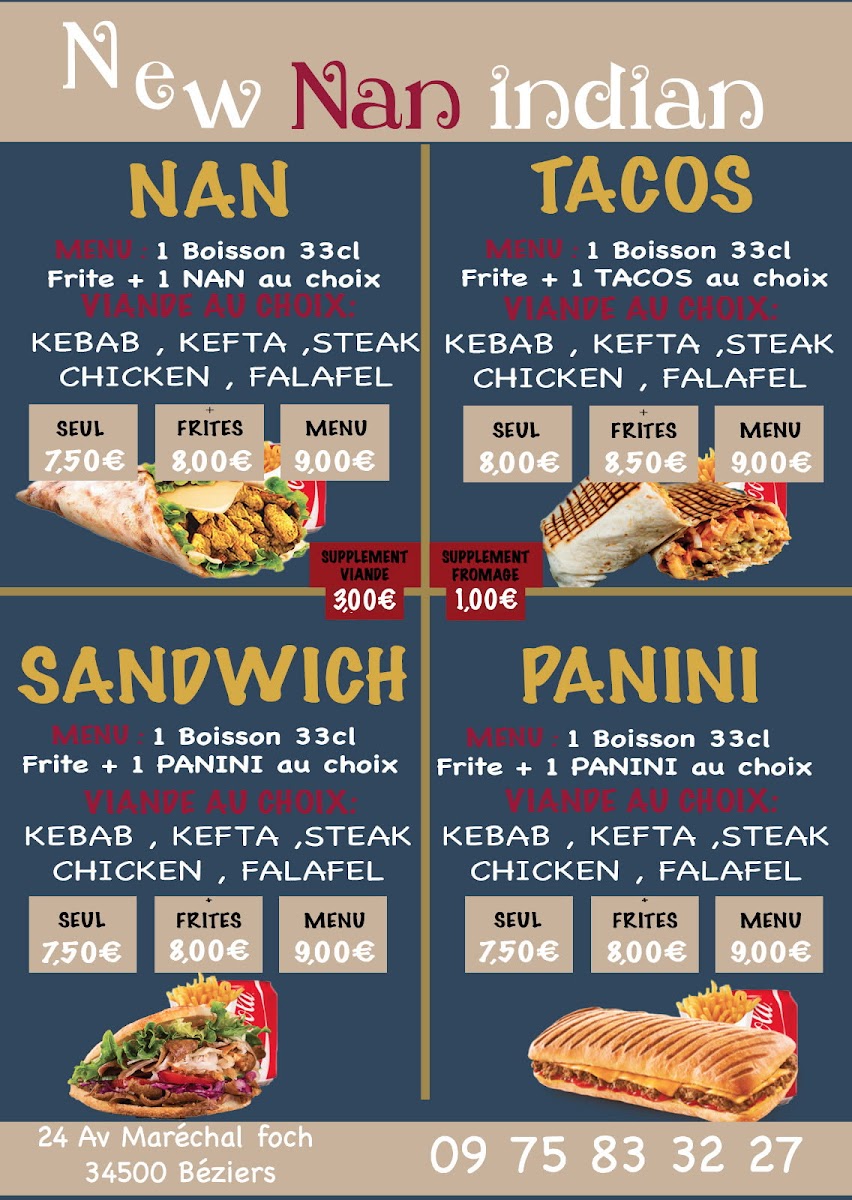 Welcome to New Nan Indian, a delightful gem located at 24 Avenue Marechal, Béziers, where culinary excellence meets comfort. This haute Indian restaurant specializes in savory nans, sandwiches, hamburgers, and kid-friendly menus. Each dish is prepared with meticulous care, ensuring that hygiene and taste are impeccable.